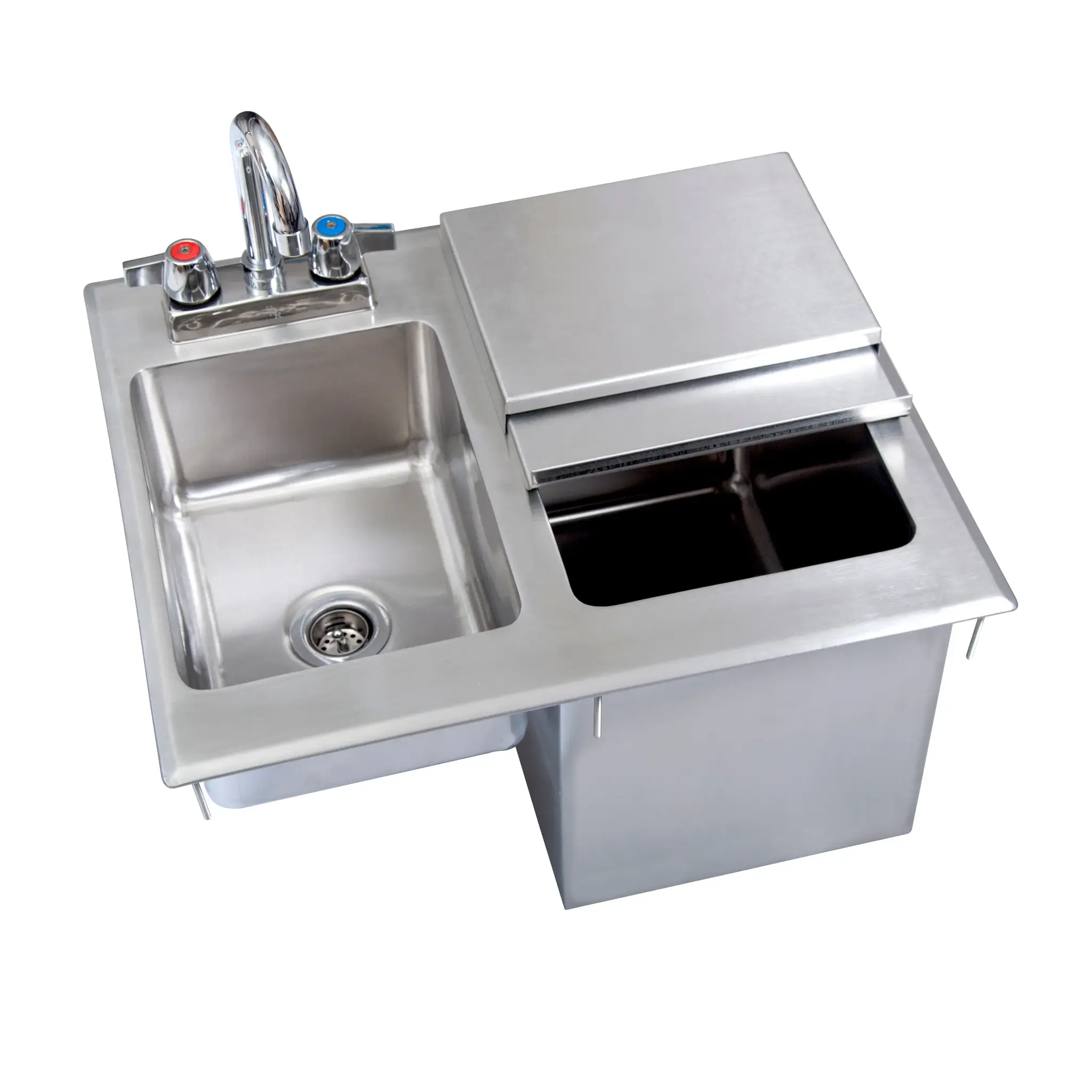 Unleash your kitchen's potential with the BK Resources, BK-DIBHL-2118-P-G Ice Bin, Drop-In. This drop-in ice bin is designed to meet the demands of a busy commercial restaurant. Made with durable 304 stainless steel construction, it ensures long-lasting performance in a high-volume environment. The ice bin on the right features an 11" deep liner and a removable sliding lid, providing easy access and efficient ice storage. The 5-1/2" deep sink bowl with a 4" OC deck mount faucet (BKD-3G-G) adds convenience for washing and rinsing utensils. The BK-DIBHL-2118-P-G also includes the BKDR-325CP and BKDR-2 drain, ensuring proper drainage and preventing any water buildup. With a recommended cutout of 19-7/8" x 17", this drop-in ice bin is a perfect fit for your commercial kitchen. Upgrade your restaurant's efficiency and functionality with the BK Resources, BK-DIBHL-2118-P-G Ice Bin, Drop-In.