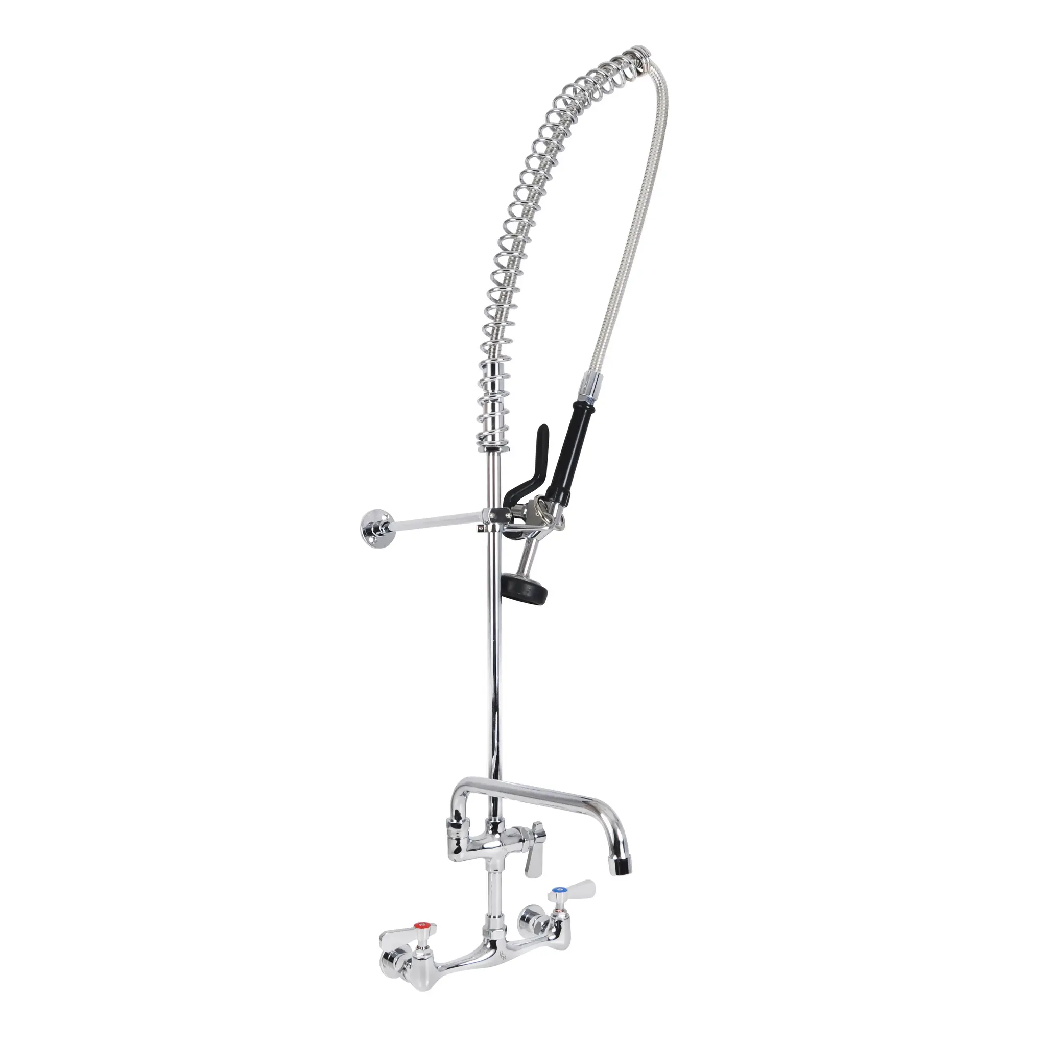 Introducing the BK Resources BKF-VSMPR-WB-AF8-G Pre-Rinse Faucet Assembly, with Add On Faucet. Designed to drive restaurant profitability, this high-quality pre-rinse assembly is a must-have for any commercial restaurant. With its triple ply hose and 1/4 turn ceramic valves, this assembly ensures efficient and thorough cleaning of dishes, pots, and pans, saving time and water. The add-on faucet with an 8" swing spout provides versatility and convenience, allowing for easy filling of large containers or rinsing of bulky items. The splash-mounted design and 12" wall bracket ensure stability and durability, even in the busiest kitchen environments. With lead-free construction and 1/2" female inlets, this pre-rinse assembly meets all safety and health regulations. Trust BK Resources, a reputable vendor in the industry, and invest in this reliable and efficient pre-rinse faucet assembly to enhance your restaurant's operations and profitability.