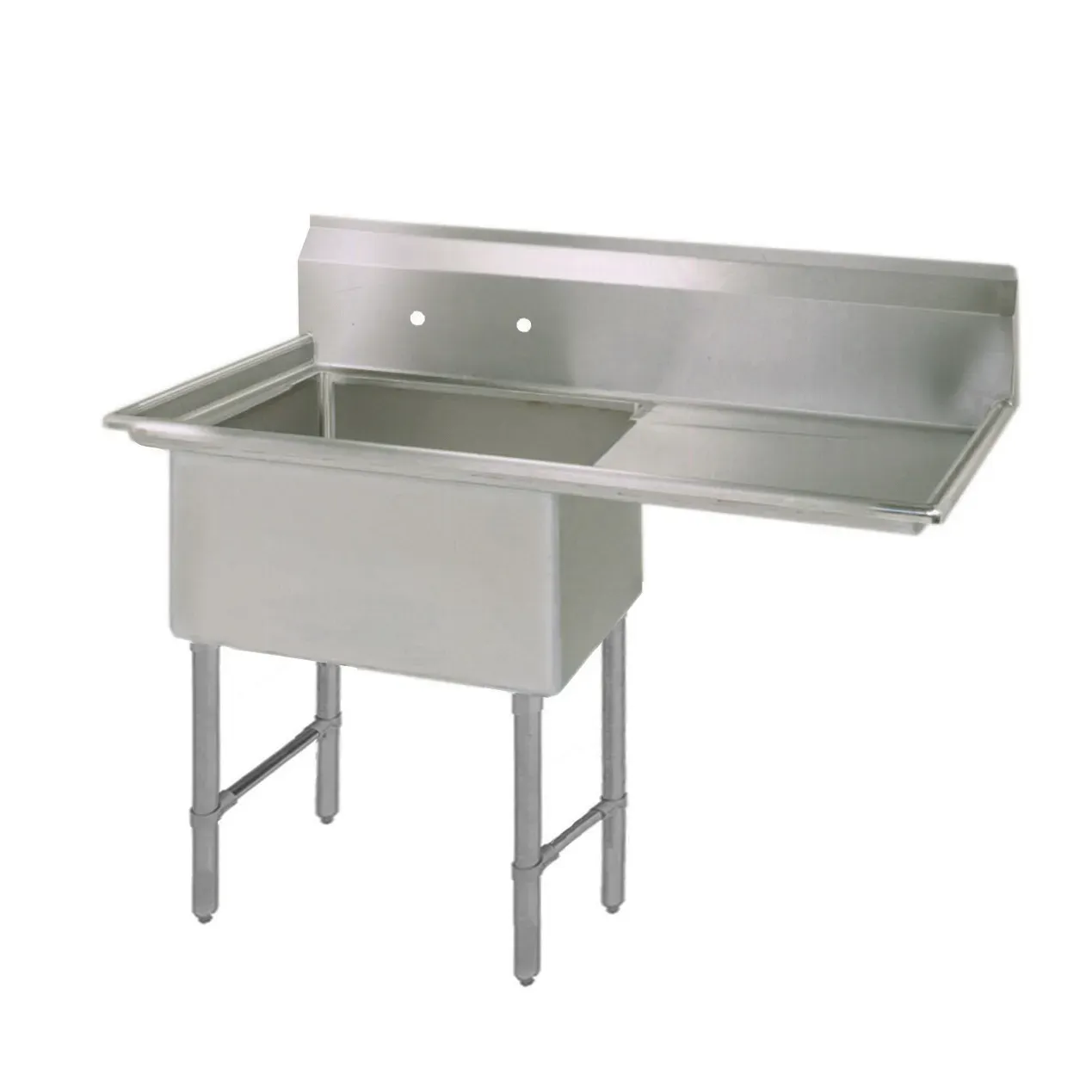 Deliver food perfection with the BK Resources, BKS-1-1620-12-18RS Sink, (1) One Compartment. This sink is designed to meet the demands of a busy commercial restaurant, ensuring efficient food preparation and cleaning processes. With its 16" wide x 20" front-to-back x 12" deep compartment, it provides ample space for washing and rinsing dishes, utensils, and ingredients. The 18" drainboard on the right offers a convenient area for drying and organizing items. Made of durable 18/304 stainless steel, this sink is built to withstand the rigors of a commercial kitchen, while the 1-1/2" rolled edges on the front and sides enhance its strength and durability. The adjustable stainless steel over plastic bullet feet allow for easy leveling and stability. With its NSF certification, you can trust the cleanliness and hygiene of this sink. Upgrade your restaurant's kitchen with the BK Resources, BKS-1-1620-12-18RS Sink for a seamless and efficient food preparation experience.