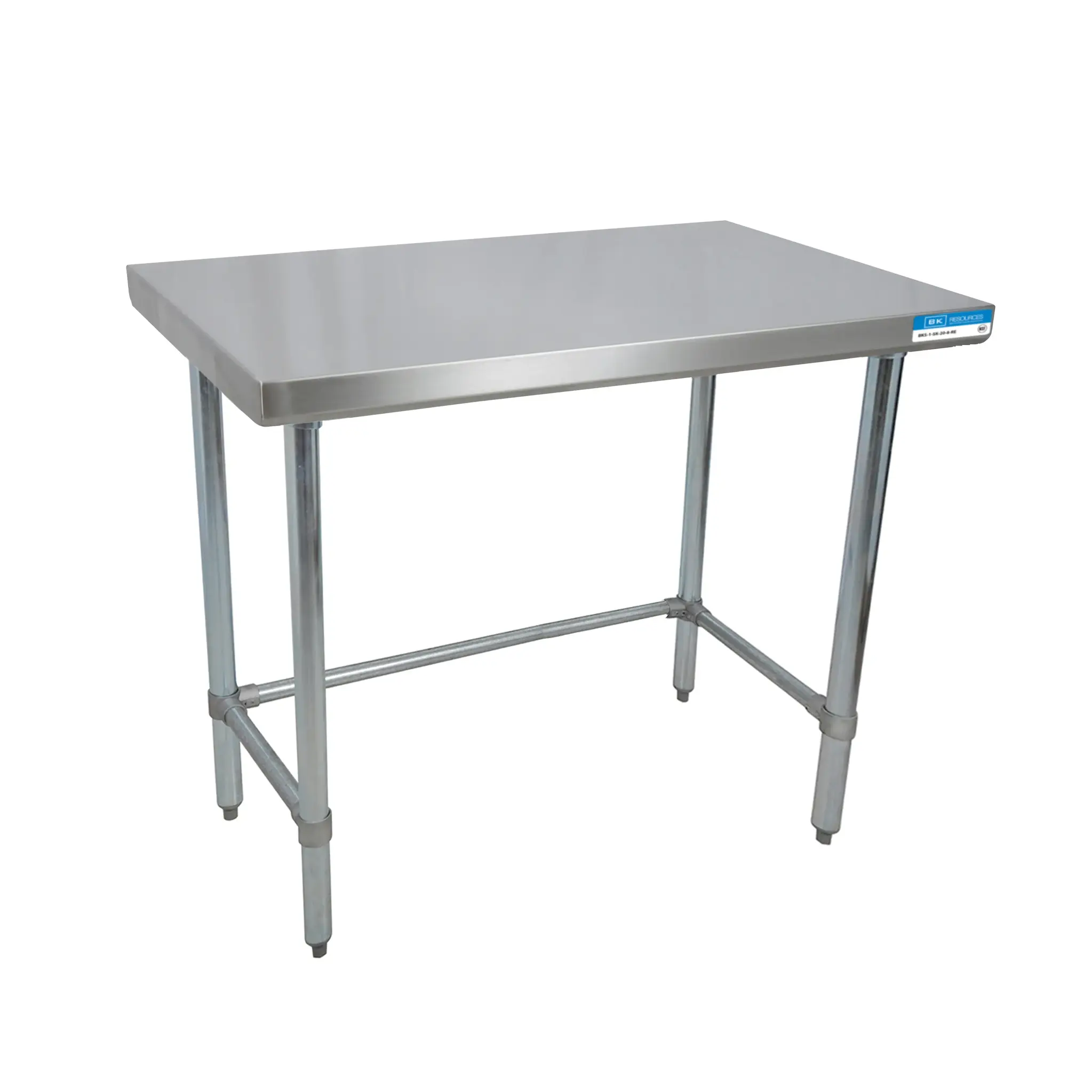 Unleash culinary creativity with the BK Resources CVTOB-7230 Work Table. This stainless steel work table is designed to meet the demands of a busy commercial restaurant kitchen. With its 72"W x 30"D x 34-3/4"H overall size, it provides ample space for food preparation, making it easier for chefs to create delicious dishes. The 16/304 stainless steel flat top is not only durable but also easy to clean, ensuring a hygienic workspace. The table is reinforced with (2) 5" C channels for added stability and strength. The open base with stainless steel side and rear bracing offers additional support and storage options. The (4) 1-5/8" dia. stainless steel legs are adjustable, allowing for customization to suit different heights and preferences. With its NSF certification, this work table meets the highest standards of cleanliness and safety. Upgrade your restaurant kitchen with the BK Resources CVTOB-7230 Work Table and experience enhanced efficiency and productivity.