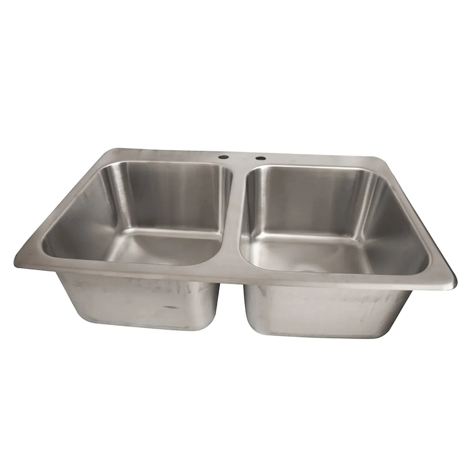 Realize kitchen dreams with the BK Resources, DDI2-14161024 Drop-In Sink. This two-compartment sink is designed to meet the demands of a busy commercial restaurant. With an overall size of 31-1/4"W x 20-5/8"D x 10"H, it provides ample space for washing and rinsing dishes. The 14" wide x 16" front-to-back x 10" deep compartments are perfect for accommodating large pots, pans, and utensils. The 4" OC deck mount faucet holes allow for easy installation of a faucet, ensuring efficient water flow. Made of 18/304 stainless steel, this sink is durable and resistant to corrosion, making it ideal for a high-volume kitchen. It also includes two basket drains (BKDR-4) for added convenience. NSF certified, this drop-in sink meets the highest standards of sanitation and hygiene. Upgrade your restaurant's kitchen with the BK Resources, DDI2-14161024 Drop-In Sink and experience enhanced functionality and efficiency.