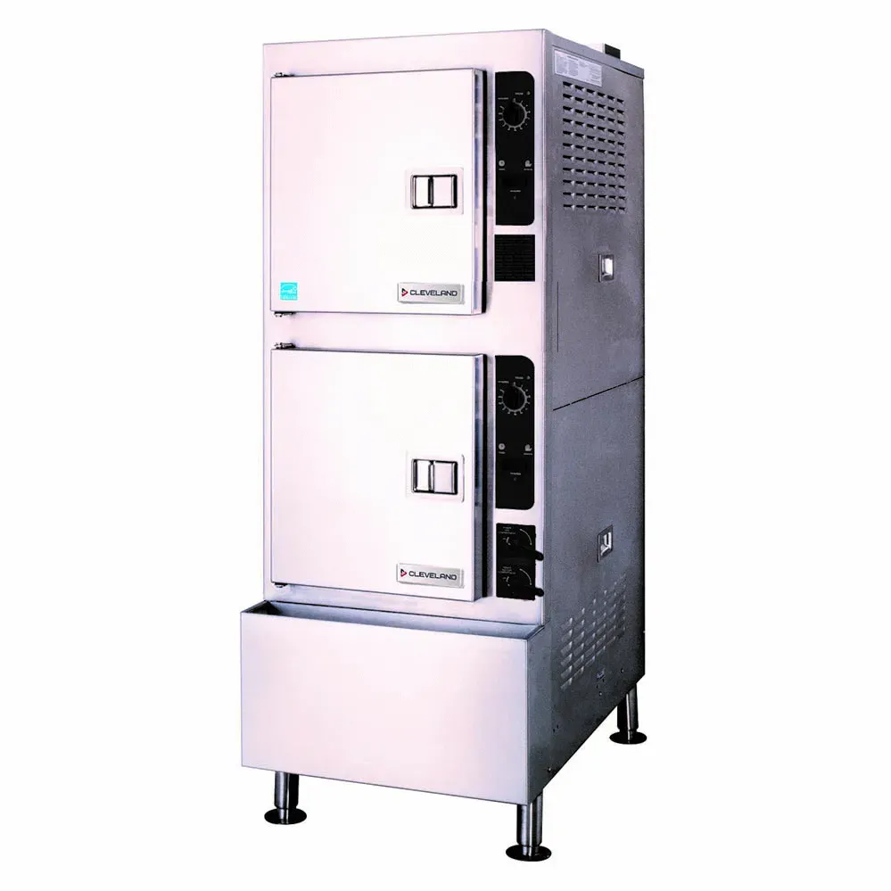 Invest in the future of food service with the Cleveland 24CGA10.2ES Steamer, Convection, Gas, Floor Model. This top-of-the-line steamer is designed to meet the demands of a commercial restaurant setting, offering exceptional performance and efficiency. With two compartments and individual generators, it can accommodate up to 5 pans per compartment, allowing for simultaneous cooking of different dishes. The SureCook controls ensure precise temperature regulation, while the 60-minute mechanical timer and manual bypass switch provide flexibility and convenience. The left-hand hinged door and controls on the right make it easy to operate and access the steamer. Made of durable stainless steel construction, it is built to withstand the rigors of a busy kitchen. The 6" adjustable legs with flanged feet provide stability and ease of movement. With a total of 100000 BTU, this ENERGY STAR certified steamer delivers powerful and efficient performance. Upgrade your restaurant's cooking capabilities with the Cleveland 24CGA10.2ES Steamer, Convection, Gas, Floor Model.