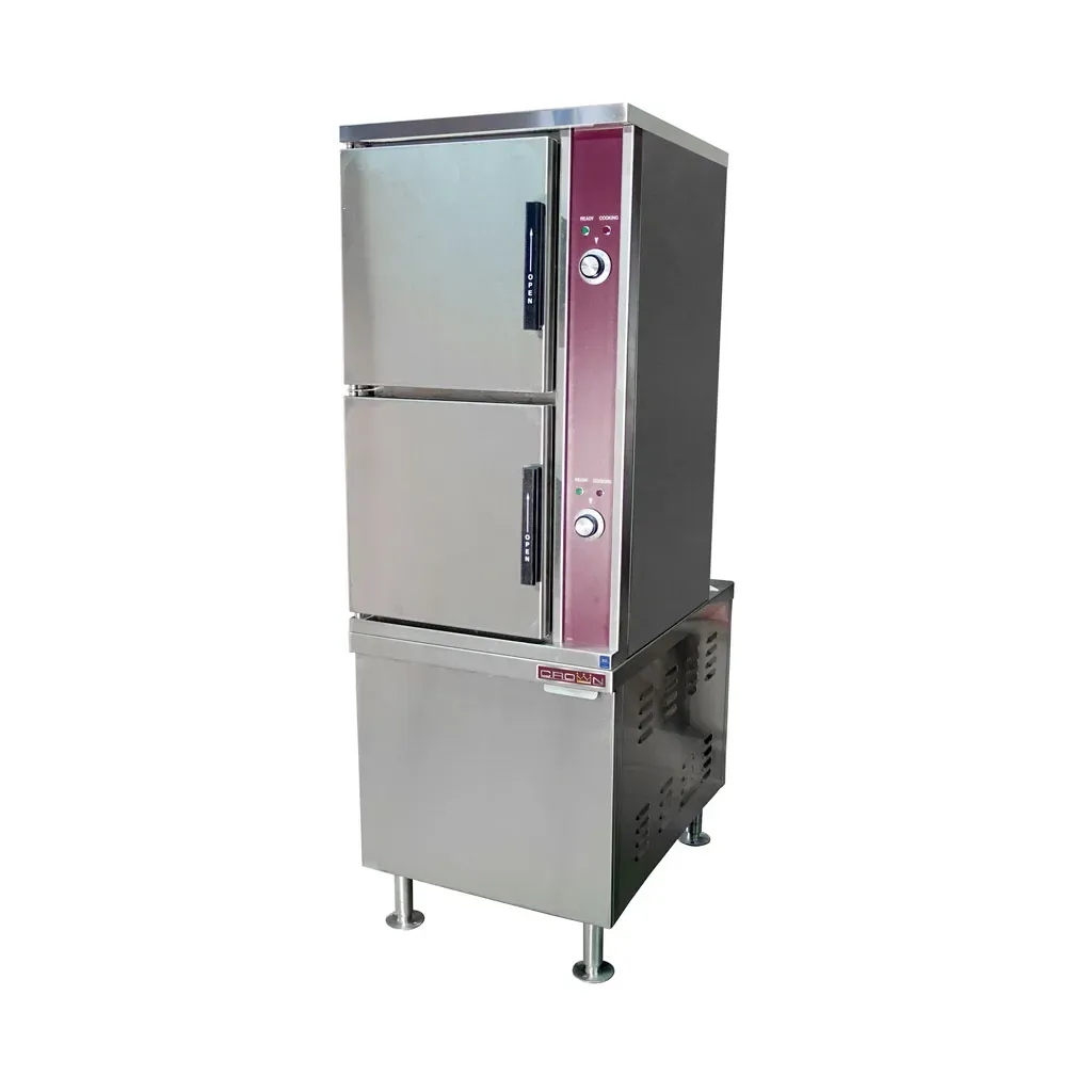 The ECX steamer stands as a pinnacle of quality and performance, expertly crafted from #4 finish stainless steel type 304. Its cooking chamber is constructed from a single, all-welded piece of 316 stainless steel, ensuring unmatched durability and resilience. Fully insulated and featuring removable stainless steel pan supports, this steamer is designed for efficient and effective cooking. The doors are engineered for excellence, featuring a removable inner liner of stainless steel combined with a full perimeter gasket seal. The outer shell, also an all-welded composition, incorporates a positive locking and sealing mechanism along with a stainless steel drip trough, which seamlessly connects to a drain to gather condensate when the door is opened. Control operations are user-friendly, accessible through a fully removable side panel. Each compartment is equipped with a 60-minute mechanical timer that includes a ready pilot light and cooking light. The innovative design halts steam flow to the chamber automatically when the door is opened during the cooking cycle, resuming once the door is closed. An audible signal clearly signifies the end of the cooking cycle, ensuring your dishes are perfectly timed every time. The robust cabinet base houses a high-efficiency electric boiler and advanced controls, featuring a full perimeter angled frame and reinforced mountings. The all-stainless steel exterior not only guarantees durability but also provides a sleek and professional appearance. The hinged door(s) are fitted with a reliable magnetic latch, while the unit rests on 6-inch (152 mm) stainless steel legs with four adjustable flanged feet, ensuring stable mounting and ease of use. Standard features of the boiler controls include automatic water level management, a pressure gauge, a visually accessible water gauge glass, and comprehensive operating pressure controls complete with pressure safety measures. The safety relief valve and cathodic protector enhance reliability and safety. Additionally, the unit comes equipped with a state-of-the-art water treatment system, a split water line, CSD-1 boiler controls, and an automatic blowdown system, delivering unmatched performance and peace of mind. Choose the ECX steamer for superior cooking efficiency and reliability, elevating your culinary experience to new heights.