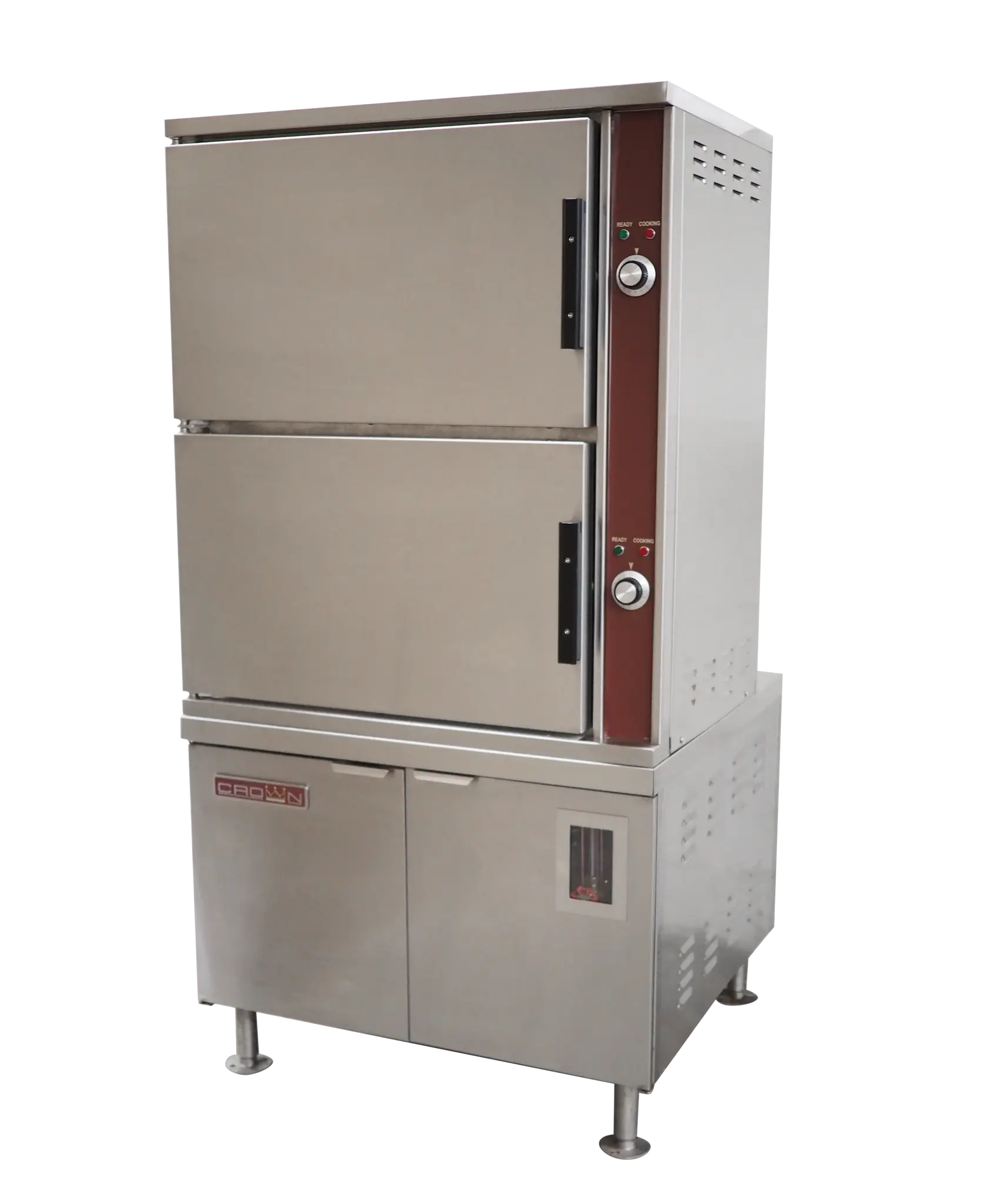 The GCX-24 Convection Steamer is expertly crafted for high-performance steaming, ideal for commercial kitchens. Constructed with durable satin finish stainless steel type 304 on the exterior, the cooking chamber is built from one-piece, all-welded type 316 stainless steel, ensuring superior corrosion resistance and long-lasting durability. The doors feature a removable inner liner of stainless steel, a full perimeter gasket seal, and a one-piece, all-welded stainless steel outer shell, complemented by a positive lock and seal mechanism. The door opening measures 17.625” x 26.75” (448 mm x 680 mm), providing ample space for easy loading and unloading of pans. For optimal steam distribution and cleanliness, the GCX-24 is equipped with removable stainless steel pan supports and a stainless steel drip trough that connects directly to the drain, efficiently collecting condensate when the door is opened. The steamer's control housing is constructed from high-quality stainless steel with a fully accessible, removable panel. Each cooking compartment is independently controlled by a 60-minute timer, featuring a green ready pilot light and a red cooking pilot light. At the end of each cooking cycle, an audible signal alerts the operator for precise timing. Steam flow to the cooking chamber is automatically interrupted when the door is opened during the cooking cycle, and reactivated once the door is securely closed, ensuring safety and efficiency throughout the cooking process. The GCX-24 is mounted on a robust cabinet base with a full perimeter angle frame and reinforced counter and boiler mountings. The unit features hinged doors, 6” (152 mm) stainless steel legs, and four adjustable flanged feet for secure mounting to the floor. Standard features include a water treatment system, automatic blowdown, CSD-1 boiler controls, electronic ignition, and a split water line, ensuring reliable performance and efficiency.