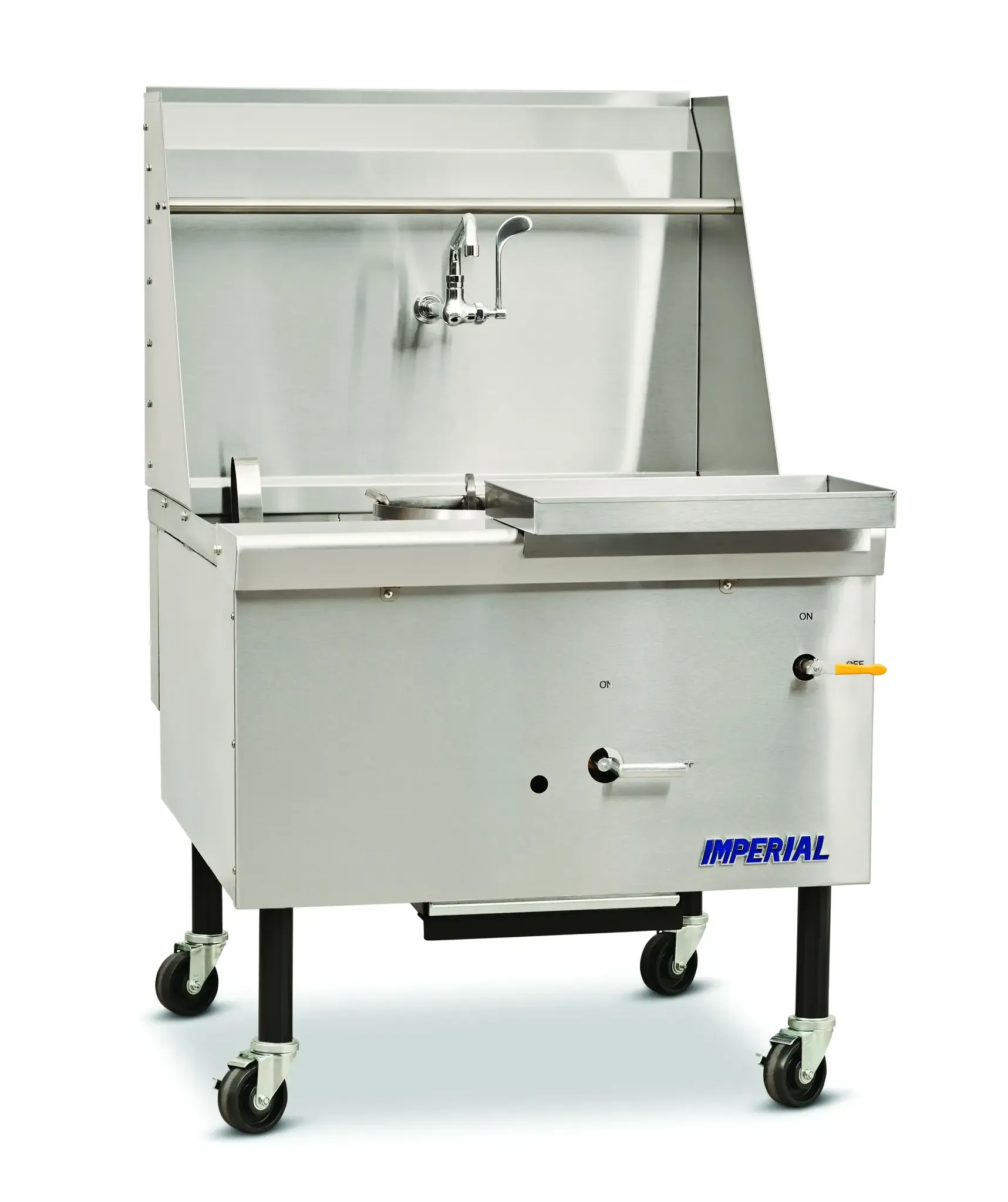 Invest in superior quality with the Imperial ICRA-8 Range Wok Gas. This high-performance wok range is designed to meet the demands of a busy commercial restaurant kitchen. With 8 burners and a water-cooled top, this wok range ensures efficient and consistent cooking results. The built-in drain system and Chinese swing faucet make it easy to clean and maintain. The knee "L" lever gas valve handle provides precise control over the heat, allowing chefs to create delicious stir-fries and other wok dishes with ease. The stainless steel front, landing ledge, backsplash, and pipe rack not only add durability but also give the wok range a sleek and professional look. With adjustable feet and 12-3/4" legs, this wok range can be easily customized to fit any kitchen layout. With an impressive 880,000 BTU, this wok range delivers the power and performance that commercial chefs need. Trust Imperial for all your commercial kitchen needs.