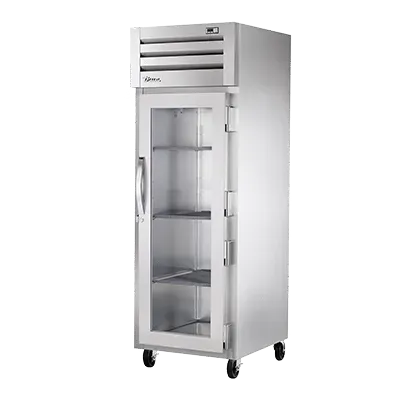 Equip your commercial kitchen with the True Manufacturing STA1R-1G-HC Refrigerator, Reach-In. This top-of-the-line refrigerator is designed to meet the demands of a busy restaurant environment. With its sleek stainless steel front and sides, it not only looks great but is also built to last. The glass door comes with a lock for added security, and the cam-lift hinges ensure smooth and easy operation. The digital temperature control allows you to easily adjust and monitor the temperature to keep your ingredients fresh. Inside, you'll find three chrome shelves and LED interior lights, making it easy to organize and locate your items. The aluminum interior sides and walls, along with the stainless floor and ceiling, are easy to clean and maintain. With its energy-efficient design and ENERGY STAR certification, this refrigerator is not only good for your business but also for the environment. Trust True Manufacturing to deliver reliable and high-quality refrigeration solutions for your commercial kitchen.