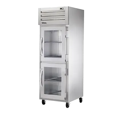 Master the art of flavor with the True Manufacturing STG1R-2HG-HC Refrigerator, Reach-In. This top-of-the-line refrigerator is designed to meet the demanding needs of commercial restaurants. With its sleek stainless steel front and durable aluminum sides and interior, this refrigerator not only looks professional but also stands up to the rigors of a busy kitchen. The two glass half doors, equipped with locks and cam-lift hinges, provide easy access to your ingredients while keeping them secure. The digital temperature control ensures precise temperature management, while the LED interior lights illuminate the contents for easy visibility. With three gray shelves and 5" castors for mobility, this refrigerator offers ample storage space and flexibility. Plus, it uses R290 Hydrocarbon refrigerant, making it energy-efficient and environmentally friendly. Trust True Manufacturing to deliver a reliable and efficient refrigeration solution for your commercial kitchen.